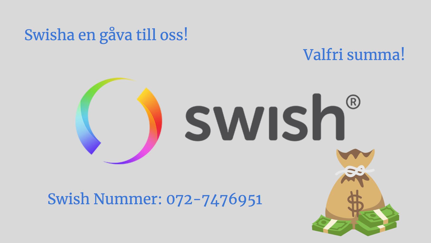 Vi skulle uppskatta om du swishar en liten gåva till oss så vi kan förbättra oss. TACK!